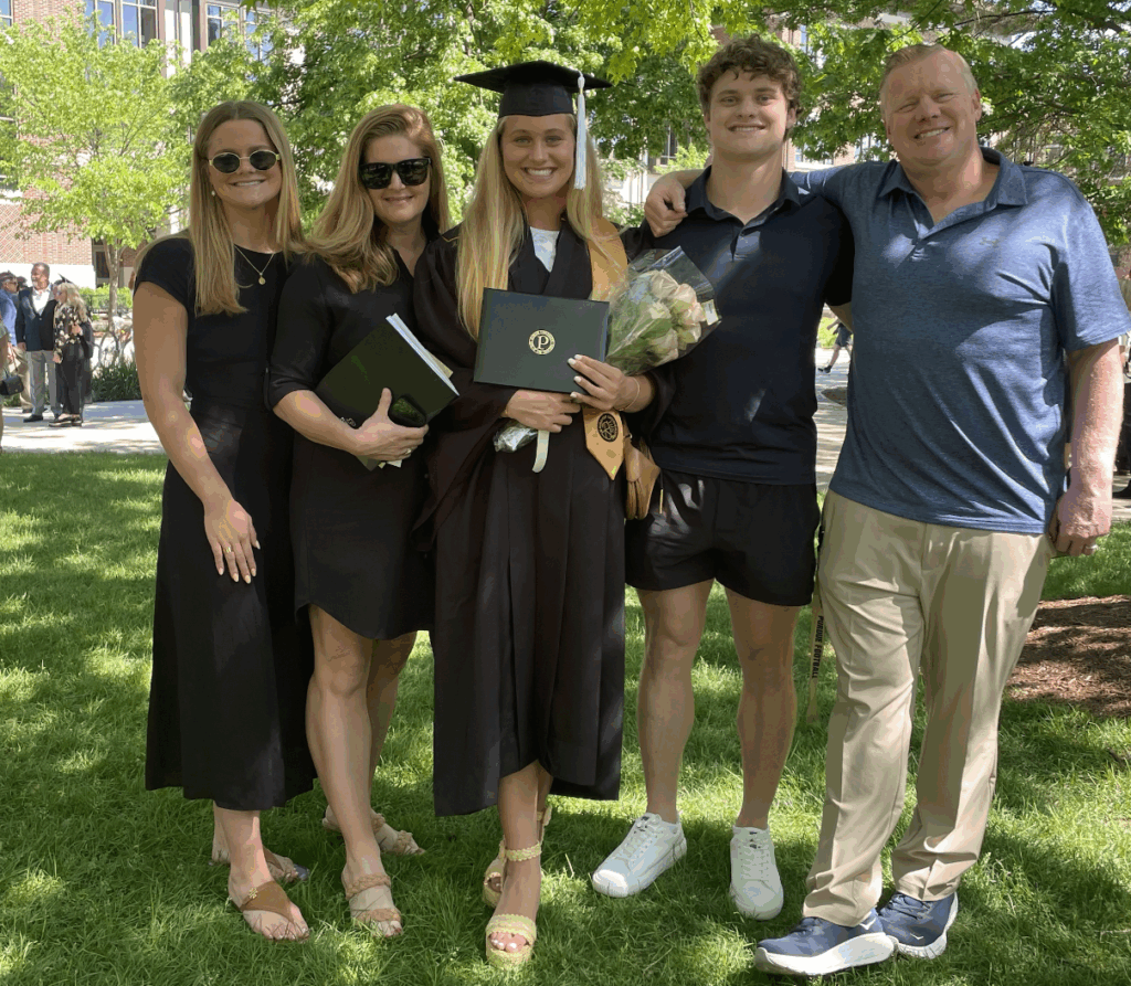 There’s Meredith, the oldest, a standout swimmer at Carmel who competed at South Carolina before finishing at Purdue. She now works for the football program. And then there are the twins: Winston and Berit. Winston is a rising sophomore linebacker at Purdue, while Berit is a star swimmer at Texas with Olympic-ability. Father Brent is the patriarch who set the tone athletically, playing football and baseball at Butler. Alicia tethers it all together.