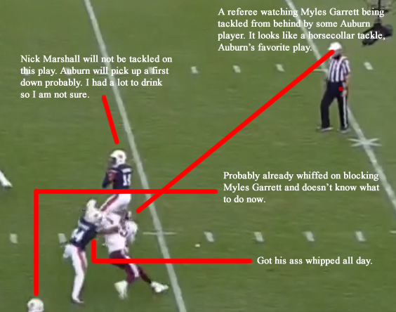 This wasn't even against ya'll... it was against Ole Miss. So the bias is definitely there. Watch as he looks back to see the first down marker on the sideline before cheating the ball forward with a 'slip off the old foot'.