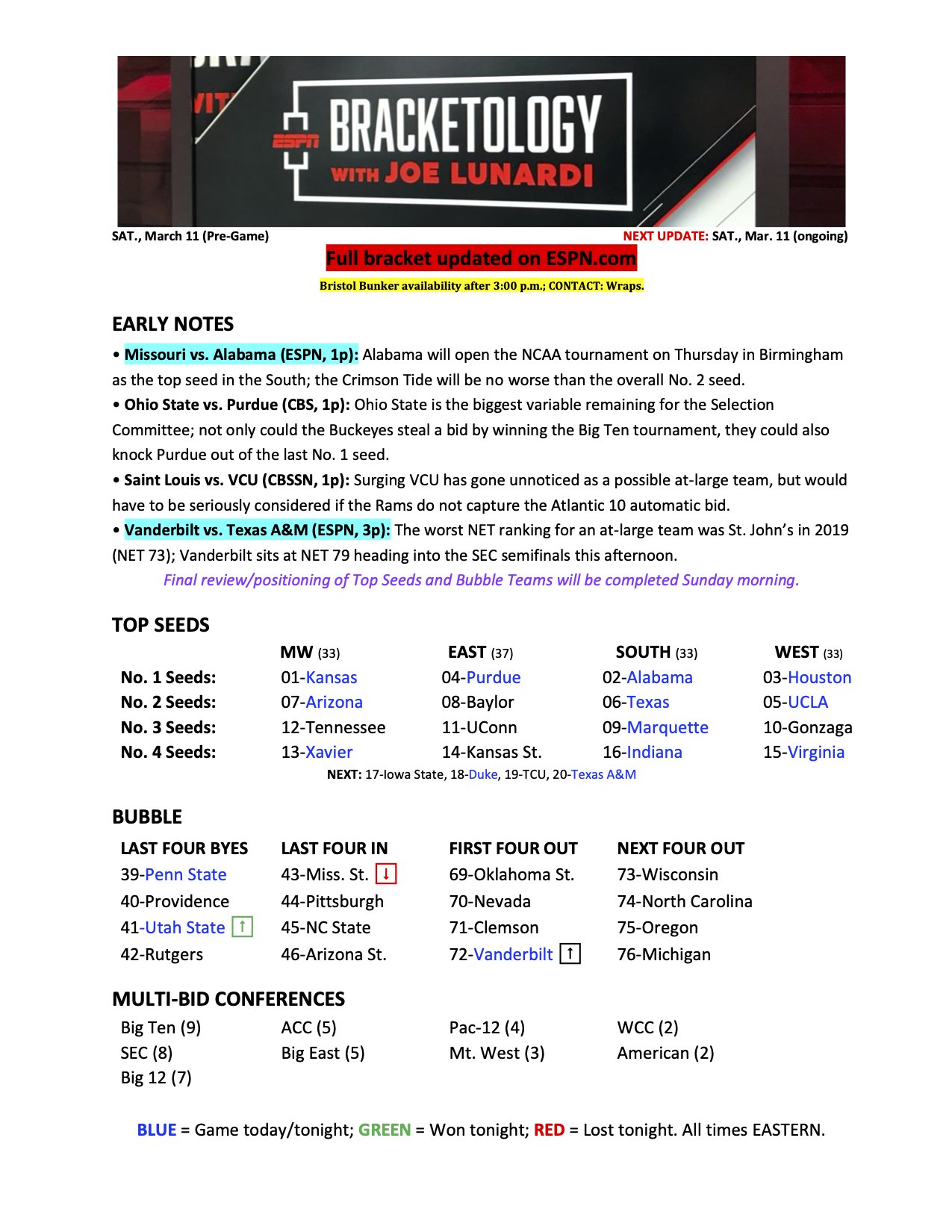 This is just how I see things today on 3/11 and 12:30 PM. The entire field and seeds will be scrubbed and alot of numbers crunching overnight and tomorrow morning that could change things
