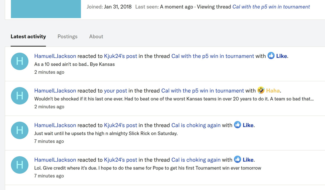 The Cal Boy troll is back lol Your posts were gold in that thread last weekend.