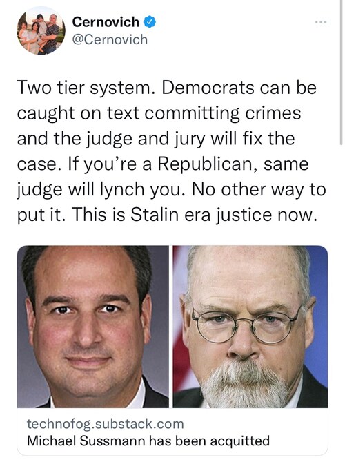 Calling the J6 defendants "political prisoners" is not hyperbole after the Sussmann verdict.