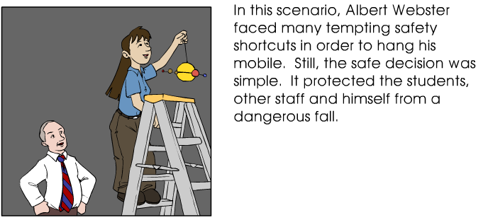 This is a screenshot from some stupid ladder safety tutorial that we have to take EVERY TOUCHING YEAR ..... In all of these years, I've never noticed that Mr. Webster has had his eyes on his custodian. I like to think that, despite he baggy khakis, mullet hairdo and eyes that are just a bit too far apart, that he got her back to the janitors closet and just wore it out. Good for you, Albert.
