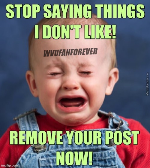 And then WVUFF decided it was another opportunity to shoe his *** while thinking he is actually winning a dick waving competition.it was about Wolfley for about 2 posts