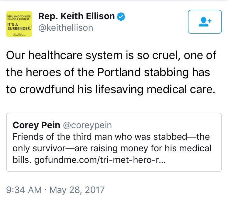 Good luck with that, California taxpayers. And I'm looking at you, working- and middle-class families; not "the rich." I'll leave you with this since-deleted incitement of Obamacare, via Deputy DNC Chairman Keith Ellison in the wake of the awful Portland killings: