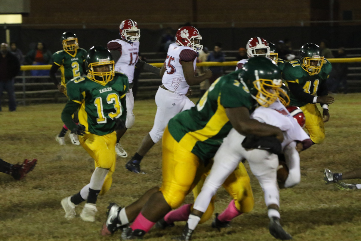 Desmond Lewis (6 ft 2, 335) for Greensville dominated the line of scrimmage for the Eagles.