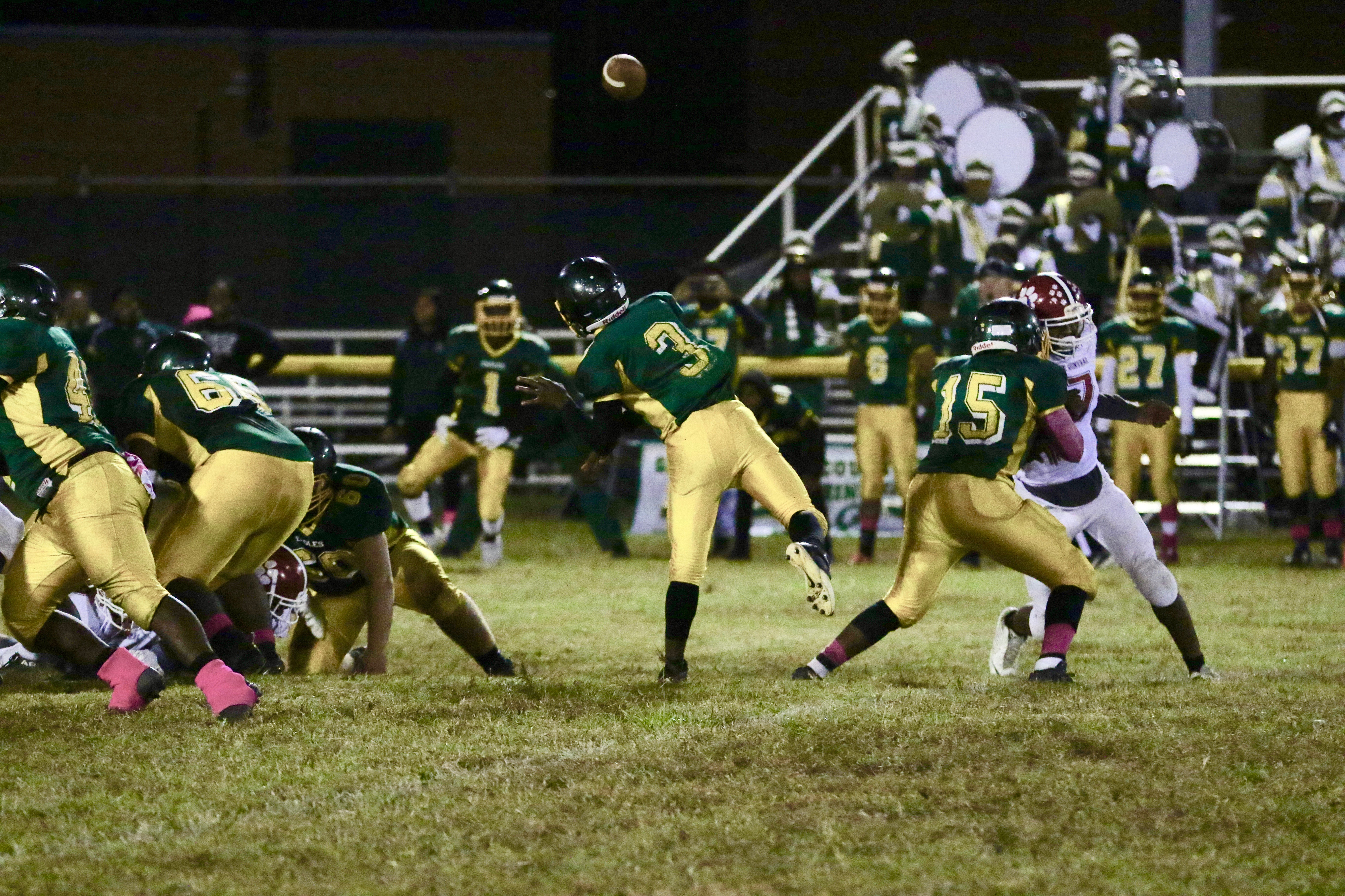 The Tigers got the ball to start but would go for it from their own 40 on 4th down. The Eagles would quickly raise up to hold the Tigers short. The Eagles would dodge a momentum breaker when they would fumble and Sussex Central would miss the ball 4 times that would have been a return for a touchdown ended up going out of bounds and Greensville would cash in on the second chance. Soon after, sophomore running back Kemory Sykes would burst to the home sideline on a 24 yard touchdown run. Rikarie Tucker would bang for the conversion to give the Eagles an 8-0 lead.