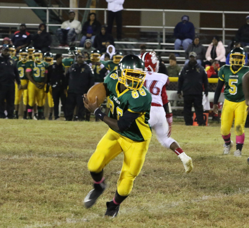 Coach Mario Walton's Eagles would take the opening drive and would continuing craving up the Tiger defense to put lock up their playoff clinching victory as Tucker would bowl through for another score. 34-0 Eagles led with 7.23 left in the 3rd.