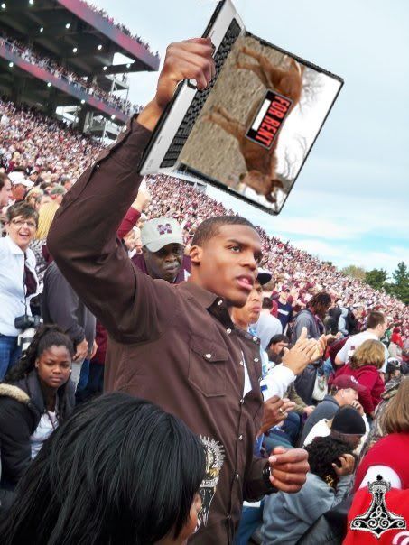 game, where he was ready to commit and was ringing a bell, only to choose Auburn. Of course his dad is the one who took the cash and Cam is just the unlucky beneficiary of our wrath.