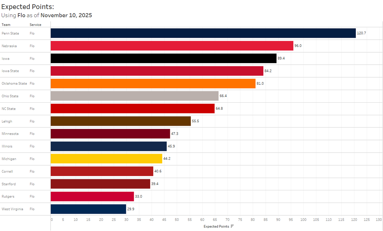 Rutgers is ranked 14th by Flo this week based on the combination of their rankings and my expected points.