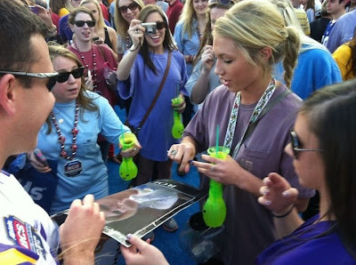girlfriend of Bama's crier signs autographs in the French Quarter