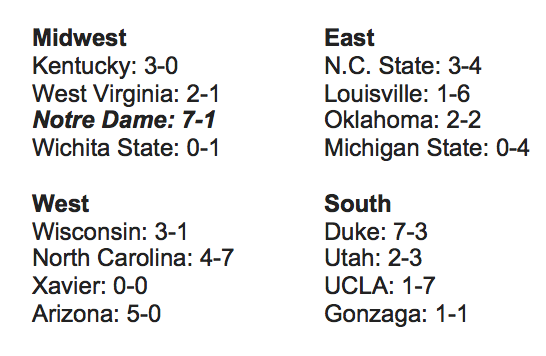 Even if they do make the final 4, NC State, Oklahoma, and Michigan State are not exactly a murderers row. Michigan State is capable due to Izzo and their toughness but otherwise, that bracket is hot ****.