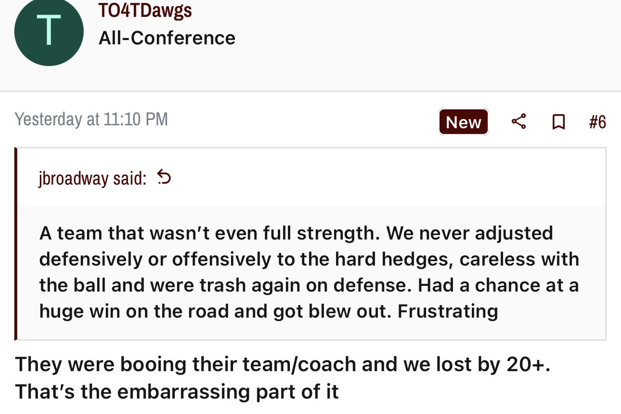I’m not the type to boo my team but will get upset. To act like the fans that did boo did so simply because the players walked on the court at tip-off is disingenuous. I personally think their effort level picked up shortly after for a variety of reasons including Pope‘s adjustments.Thats fine...Just don't ***** about them giving a "pro" effort when you boo them. No reason to give a 100% effort for some jerk booing you