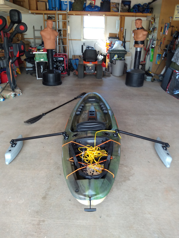 I would like to see the look on the face of some idiot burglar that broke into Warriors garage and saw the two punching dummies...one that looks pretty beat up due to abuse and the other combat equipment. That thief would probably leave a brown streak for half a mile. [laughing]Installation was from a video on line. There were no instructions with it but, it was not hard. The only thing was that when anchoring the base for the arms to the kayak the screws took forever to tighten. At first I thought the anchors would be just a bit lose and that was how it was supposed to be but, eventually they tightened up. Took a little over an hour. Just finished about 30 minutes ago. Will test run hopefully sometime this next week.