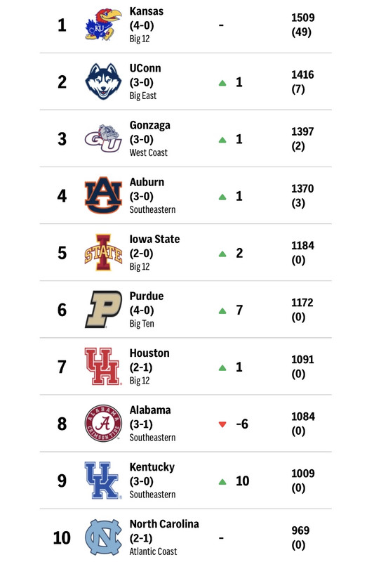 We started out at 23 and we climbed all the way up to 9. So that win over Duke that was a 14 spot climb which is a really good jump. If we keep taking care of business we'll get there!2 teams ahead of Kentucky that already have an L. This is why polls cannot be taken seriously. We should be a min of #7 but they hate us. Fact.