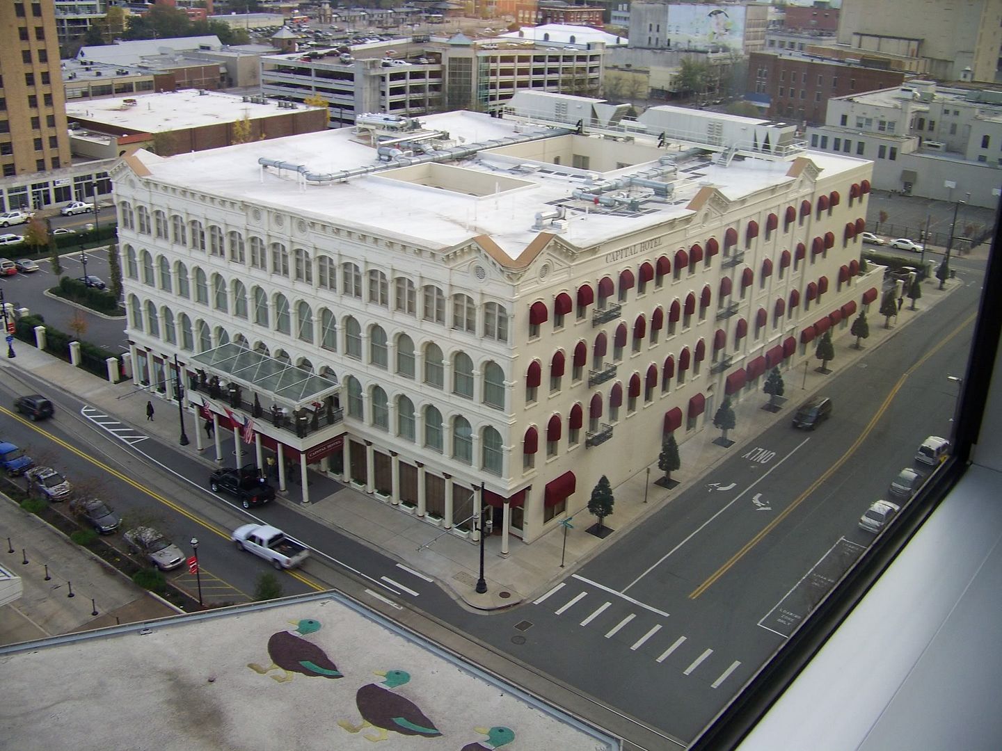 I've stayed in the Hampton (several times), Marriott Courtyard, and Peabody. All are very decent and well-located. The first two are relatively new (past 5-8 years, I'd say). The pic that Kim Jong posted includes a very, very well-liked restaurant: Ashley's at the Capitol. It's pretty fancy, but I hear the prix fixe is a steal for what you get. Look it up if you're a foodie.