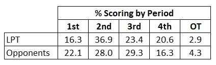 I don't understand an argument that depth was a (or the) major issue with LPT this past season. In LPT's losses down the stretch, here were the in-game scores: