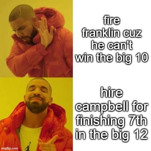 Campbell leaving to me is a sure sign that $h!t is hitting the fan at ISU. That guys been in play for how many jobs in the last decade? He’s getting out now before ISU falls off a cliff.Look at the teams in the B1G now. They can stay atop KU, CU, WV, UCF and probably OSU. KSU is a pickem.