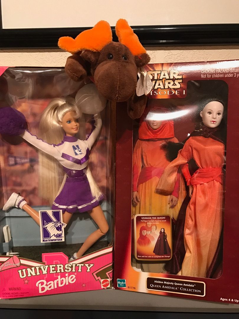 As you can see, not only is the lucky raspberry patch (the Mojo Moose Mecca) buried under snow, but the basketball hoop that fronts it is moribund for the present. Accordingly, I have begun my search for other objects of mojo merit. The best I could find on short notice was a pairing from my daughter's "Barbie Collection" suggesting that it looks like the stars are aligning for that NCAA Tourney invite.