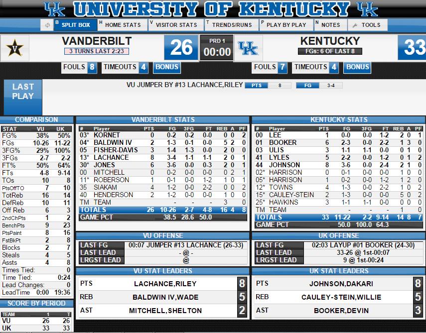 We played well for a few minutes. Looking at the stats, there is no reason for Vandy to even be close. The biggest thing seems to be turnovers in the paint. Vandy is playing physical and fouling a lot.