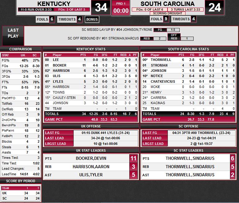 Definitely need to bring the intensity 2nd half - SO Carolina is desperate for a win, especially against this team.