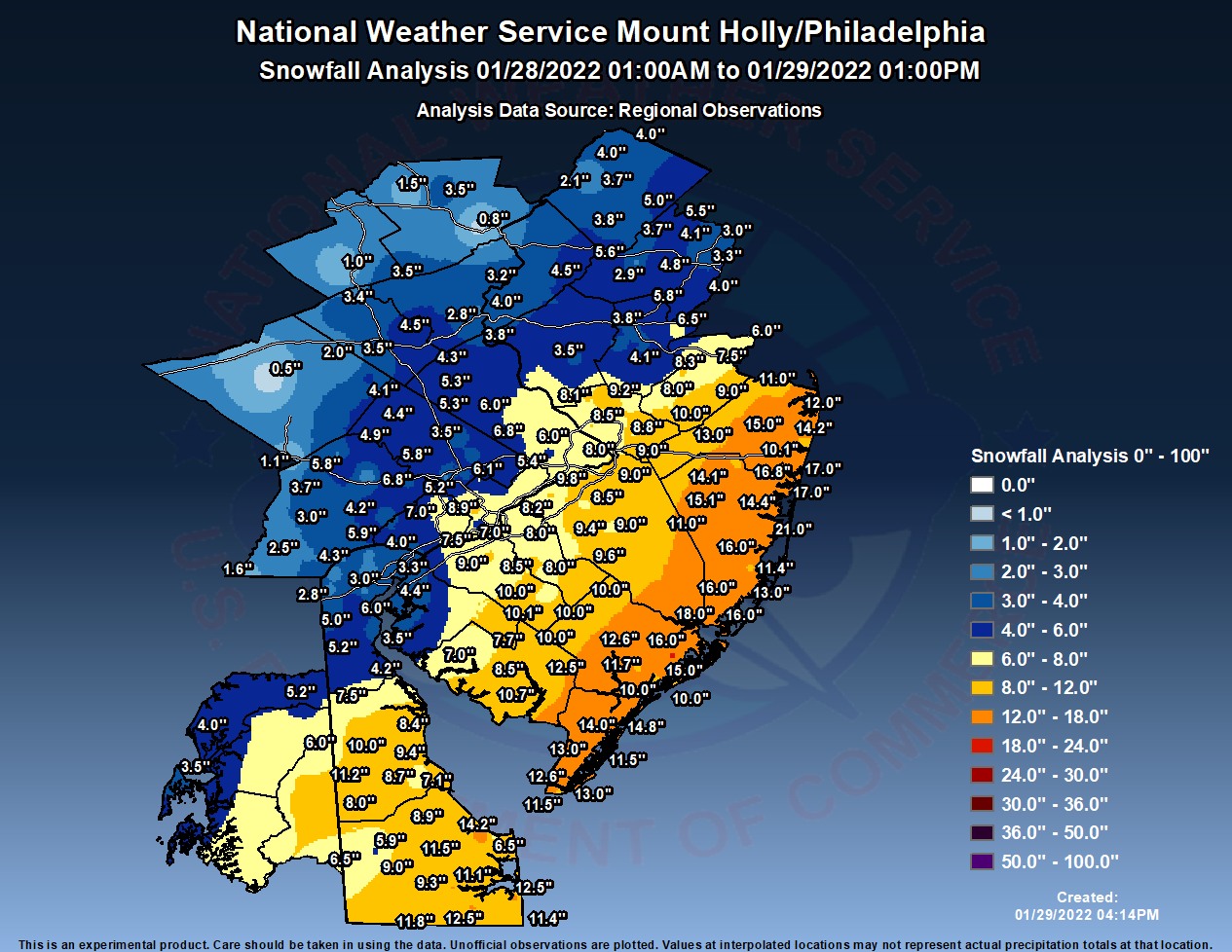 1 NNW Northeast Philadelphia 4.7 in 0729 PM 01/19 Trained Spotter