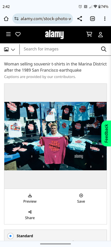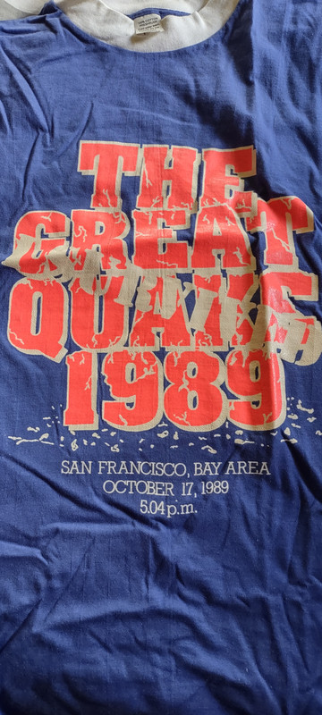 My parents were in San Francisco on a trip when the earthquake hit. Power was out for days and I think we finally got in touch with then 3 days later. They brought back us each one of those I survived the quake shirts. I still have mine, It's white with neon orange and black lettering. Alas, it no longer fits.