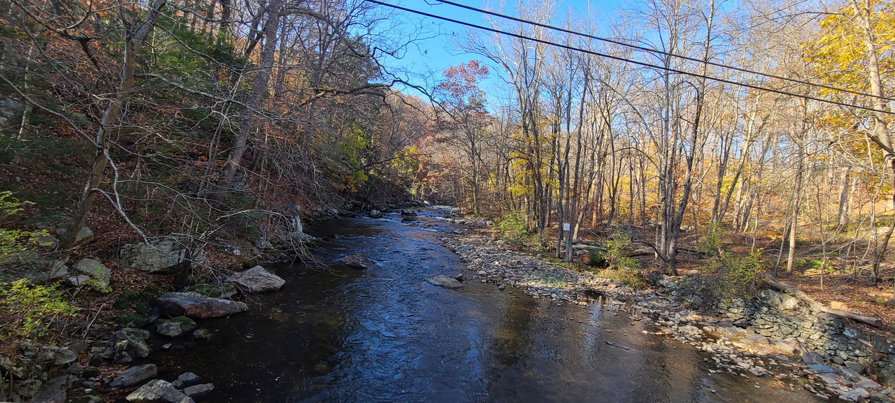 Gotcha, that's up by William Paterson. About halfway down on the Red Trail between the entrance and the branch to the Yellow Trail is where we come in. We just walk up the hill behind our house and it takes about 10-12 minutes to get to the Red Trail.Yes, next time I'll look for the wave!