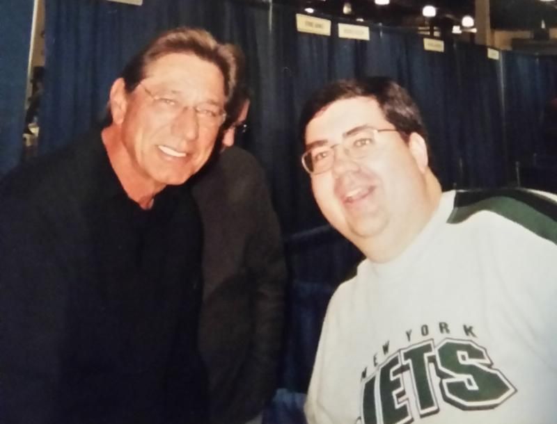 Back in 2004, as a subscriber of the Jets insider newspaper, Jets Confidential, I won a contest to meet Namath and get his autograph. I had him sign an official Mitchell & Ness uniform top, identical to the one he wore during the 1968 season. I had it framed and it looks great. He was very cordial and was more than happy to answer any question I asked him. Here's a photo of our meeting...