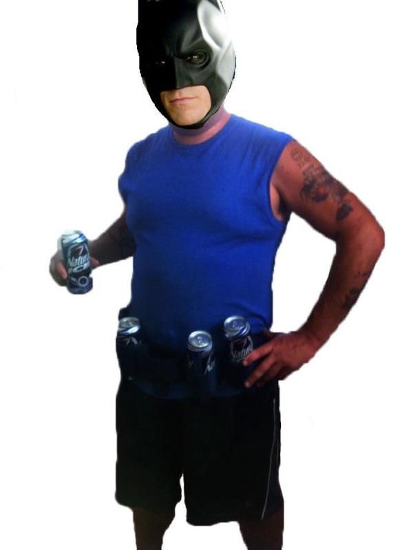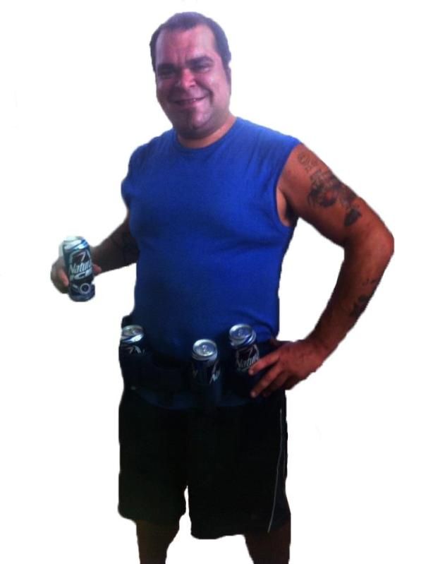 If you've ever been out in the Jackson area to listen to live music, and more specifically LOCAL live music, chances are you have run into this guy a time or two. His name is Murph and he is a drummer who is usually playing for at least a half dozen local bands at any time. He likes to fight, 17, and drink, and not necessarily in that order. A lot of days, he'd rather fight than 17. With that said, he's the kinda guy you wouldn't want to mess with. You certainly wouldn't want to get on his bad side. I've seen him knock dudes out and it ain't pretty. BUT, he DOES have a sense of humor. When he decided to post a pic of himself sporting his new beer belt, the following result was the funniest thing I've seen since The Peeping Croom. Please observe below and feel free to play along: