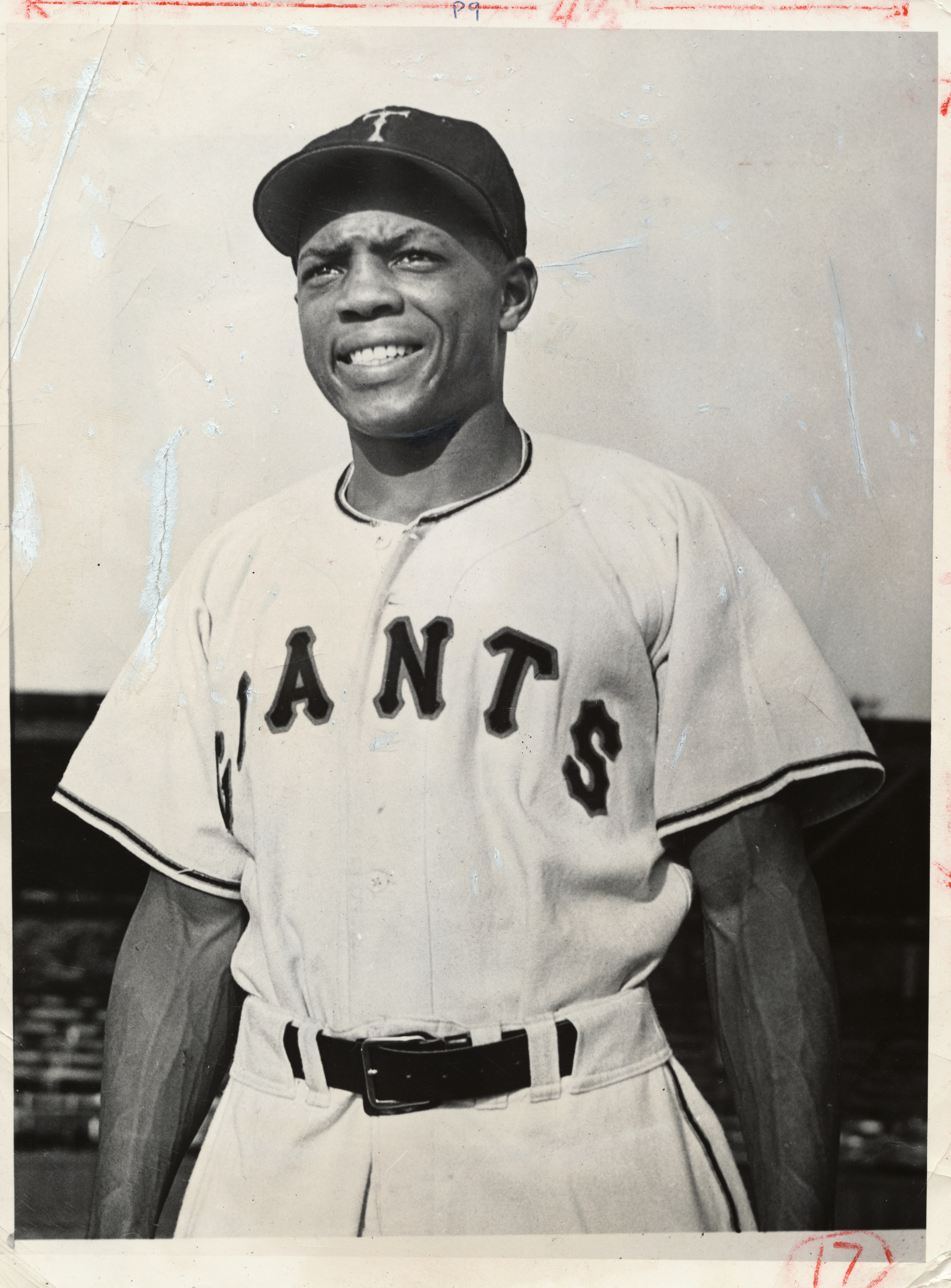 Willie Mays in Trenton Giants uniform. T for Trenton.