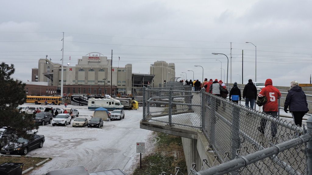 Outside of the weather, it was a great road trip. Had Thanksgiving in Omaha with the family of my freshman year roommate at NU. Drove to Lincoln on Black Friday. Parked in some lot on 10th, just north of the stadium. Walked on some bridge that traversed the railroad tracks.