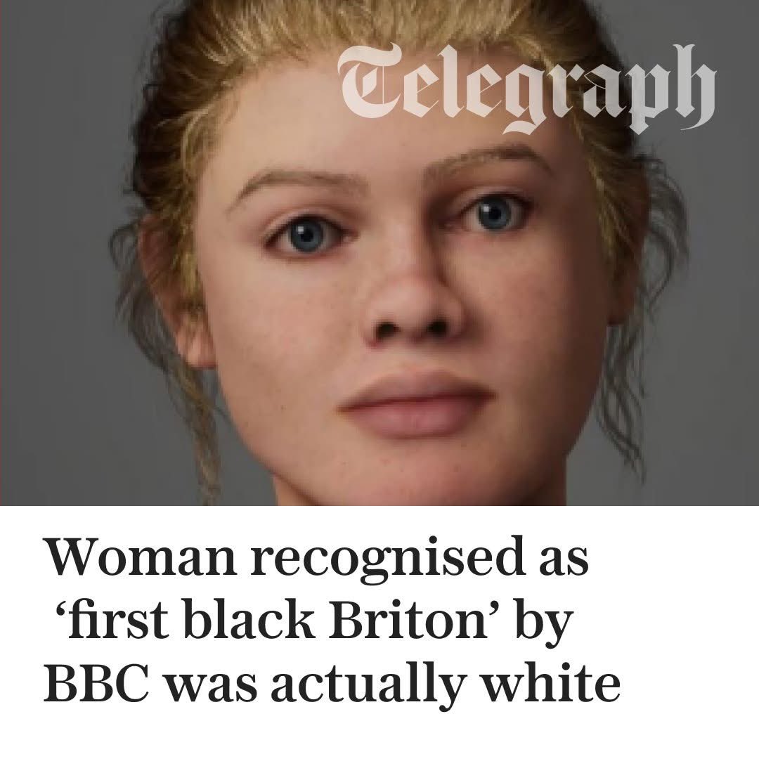 The woman recognized by the BBC as the "first black Briton" was known as the Beachy Head Woman, but recent DNA analysis has confirmed she was actually white, originating from southern England". The even had built a plaque or statue that had to be taken down haha.