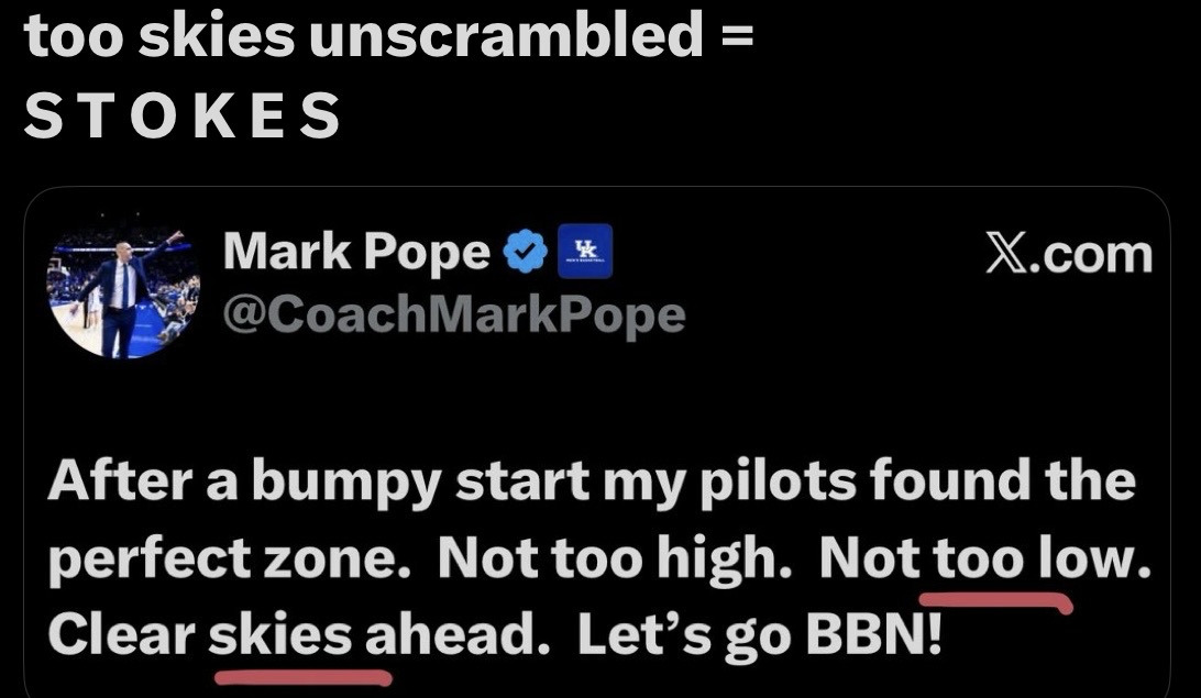 You guys see jokes, I see progress. The old Mark Pope would have said "my beautiful pilots have flown me into a beautiful space, they are ELLLLITE".