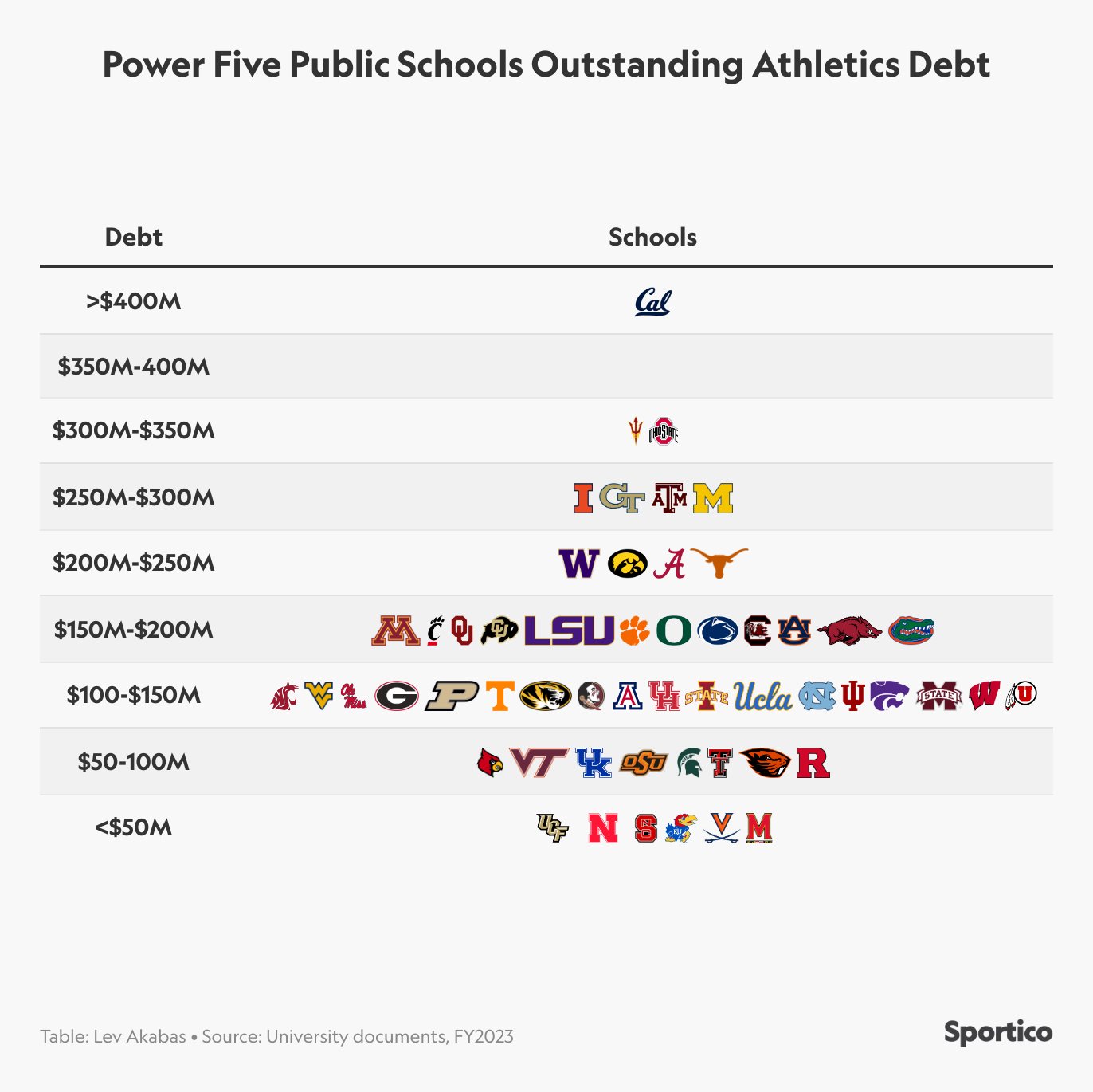 Debt doesn’t mean you are in a bad place. A better measure would be debt to income ratio. Ohio State might have $300 million in debt but it also has $200 million a year in income. So it not a huge deal compare to say Oregon State with say $100 million in debt but only $40 million a year in revenue.