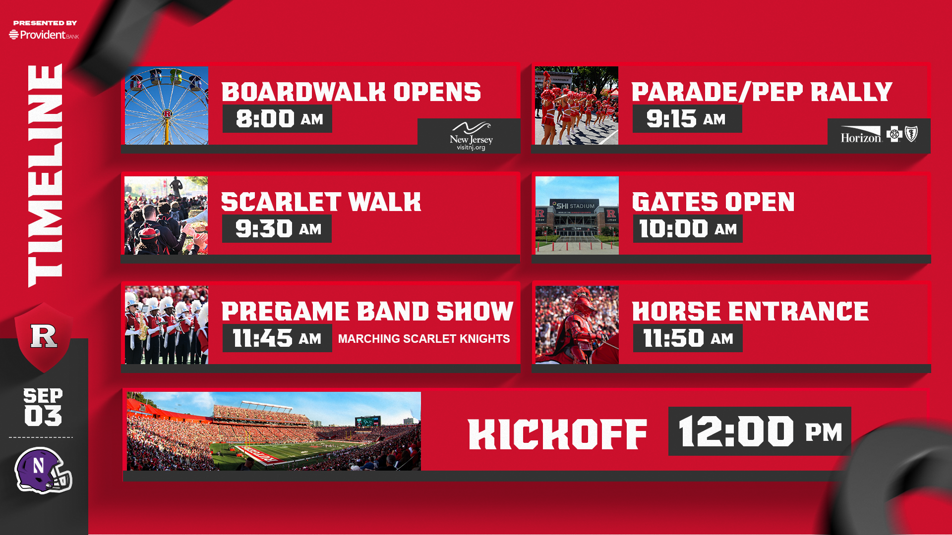Its now a 30 minute show, starting 2.5 hours before and ending with the team arrival 2 hours before. So for Northwestern this weekend, 12 noon game, Scarlet Walk starts at 9:30 and the team arrives just before 10am.