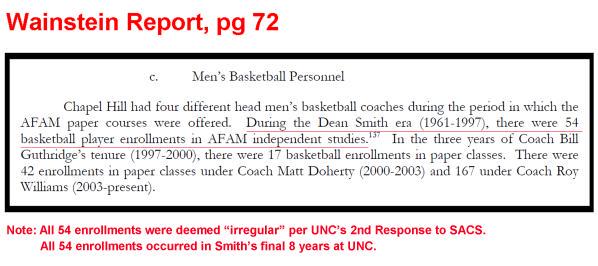 You know, the sorry thing is that if the Rams Club (or whoever calls the shots in Chapel Hill) had told unc’s administration five years ago to clean house and apologize, it would all be over by now and Dean Smith’s reputation would be safe. This dodging and weaving and stalling and being too clever by half has done more damage to unc’s athletic program than Mary and Jay and Dan and Rashad combined. Not to mention the damage it has done to unc’s reputation as a respectable academic institution. It’s a damn shame.