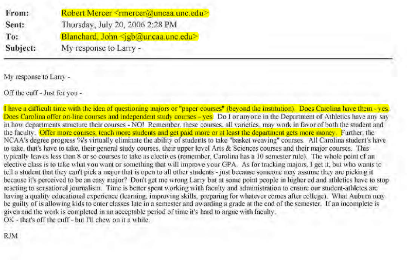 @ttessier0414TIM @crampell Please see #unc academic fraud scandal for more on those "open doors." University shoved athletes into "no-show" classes as people made millions off the athletes' performance on court.