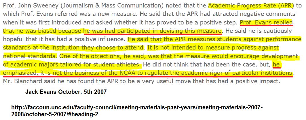 Galling. unx's Jack Evans , as mentioned here , helped devise the APR. The same APR that kept UConn from participating in post-season play one year because the Huskies didn't exploit it to maintain the academic eligibility of their basketball players. Look at the wording here...straight from Evan's mouth. In describing how the APR can be abused , he's telling the world just how unx , uhhh , exploited the APR. Sickening...