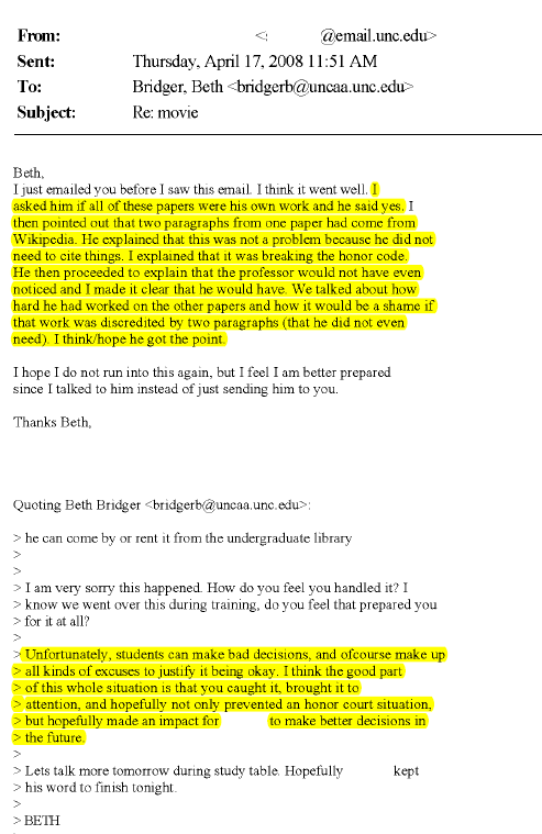 "Professor would not have even noticed." Athlete plagiarizes. NOT sent to Honor Court. Hmmm. Would allowing an athlete to cheat academically with no repercussions as to maintain athletic eligibility be considered an "impermissible benefit?" At unx , I guess not...