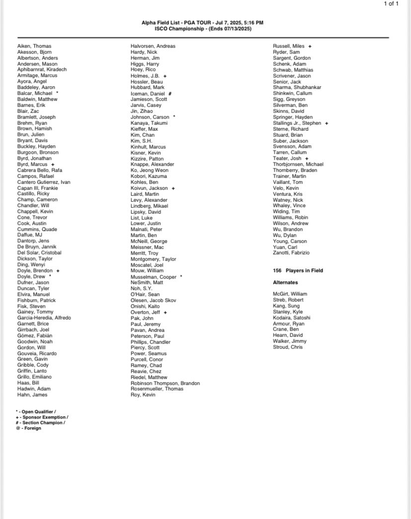 I saw the entries and it looks like the same cast of characters at the ISCO this week in Louisville as have been at Champions for six years. One notable addition is JB Holmes who for some reason never seemed to want to play at the Barbasol/ISCO before this year, and I know for a fact they invited him every year when he was not eligible for the Scottish and British.