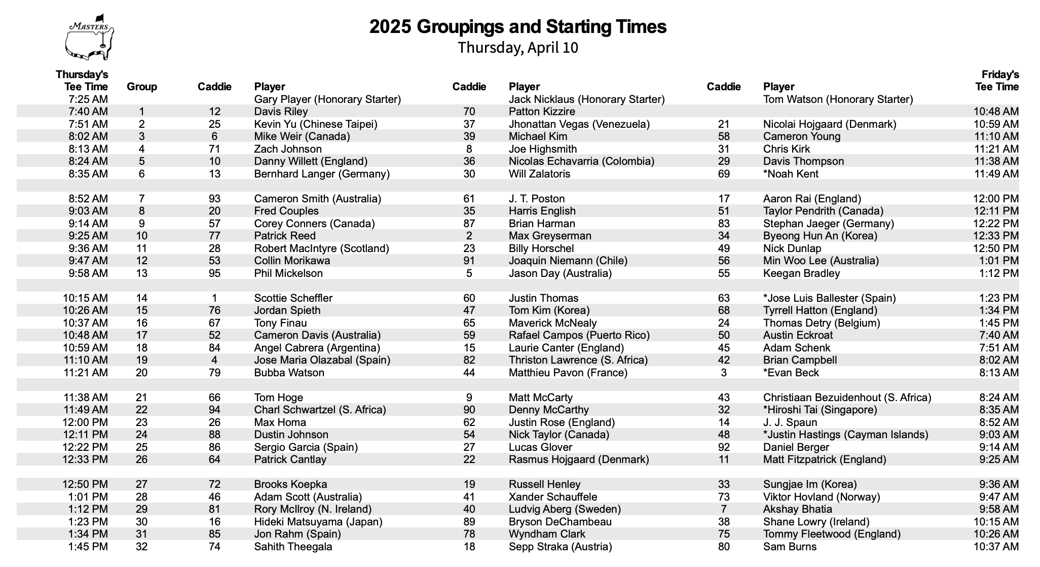 Honorary Starters, Masters.com/Masters App, 7:30 a.m.