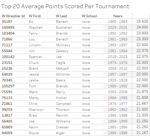 I'm sure that you fellows know all the names on the list, I'm unfamiliar with some of them. The thing I found interesting was number 10, the former fighter pilot turned Iowa wrestler. Joe Scarpello