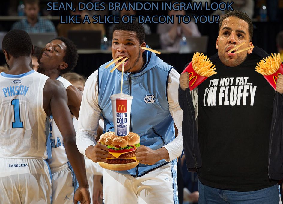 I've got many more, but it's pretty close to game time now. I do want to add one more pic that I just made. 'Buckin Elkin' emailed me and wanted me to make a pic of Kennedy Meeks & Sean May on the UNC bench pigging out. Here's what I came up with. Hope Brandon makes it out in one piece tonight.