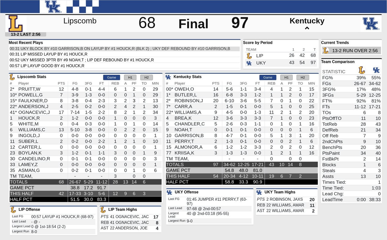 The offense is so good that we weren't yelling where the heck Butler and Oweh was. Pope's got such a handle on the players that he knew we didn't really need them and wanted see what we had in other guys getting bigger minutes than they were used to. What a "problem" to have. I do wonder if Butler was sore after the hard fall he took early in the game. He hit the floor hard.