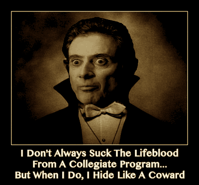 Should have been fired under morals clause over screwing Sypher and paying for abortion he verified that in Federal Court but Uavel has no morals and Jurich has no balls or he would have pulled the trap door at Loserville it's all about winning nothing else :chairshot: