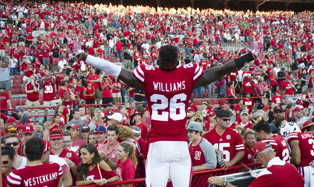 The girl? Just a Husker fan that is giving him the 'I wanna **** you look' that every girl gives him... lol looks like his gf.