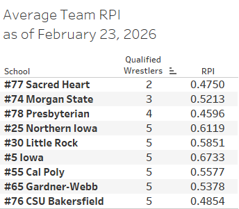 Wrestlestat lists RPIs for 79 of 78 D1 teams.
