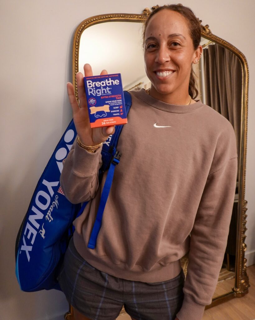 One of the things that have helped Keys become a top tennis player is her use of the Breathe Right nasal strips. She has teamed up with Breathe Right to highlight the importance of daily sleep, which is important to her as an athlete.