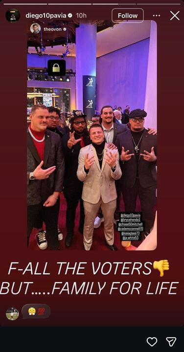 Diego Pavia blasted the Heisman Trophy voters on his Instagram story after Indiana QB Fernando Mendoza was named the winner of the 2025 award. In a post on his story, Pavia wrote: “F all the voters,” after reposting a photo from comedian Theo Von.
