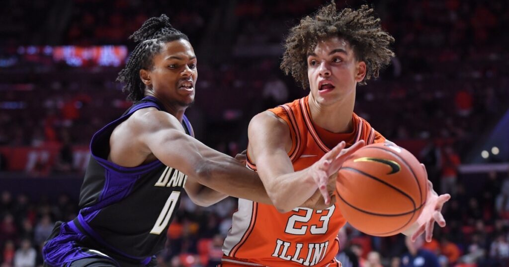 Keaton Wagler put up 22 points, five rebounds and eight assists. David Mirkovic added 19 points, six rebounds and one assist.